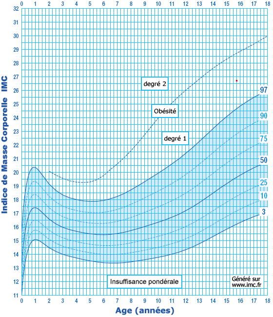 - L'enfant est obèse si l'IMC est supérieur au 97 ème percentile.
